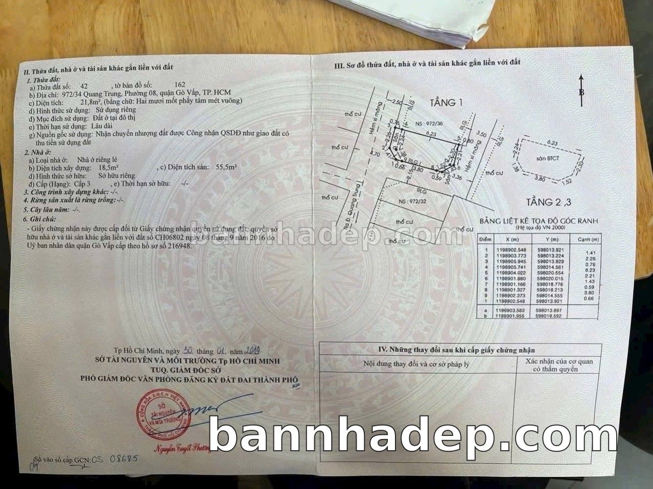 Mô tả chi tiết CHỈ 3.48 TỶ – NHÀ ĐẸP 3 TẦNG QUANG TRUNG – GÒ VẤP – HẺM THÔNG – GẦN CHỢ, TRƯỜNG HỌC • Diện tích 22m², ngang 4m, dài 7m, vuông vức chuẩn phong thủy. • Kết cấu: 1 trệt 2 lầu đúc, 2PN, 2WC, ban công. • Hẻm sạch – thông thoáng, cách mặt tiền Quang Trung chỉ vài chục mét, gần UBND P8, chợ Hạnh Thông Tây. • Khu vực an ninh, dân cư đông đúc, tiện ích đầy đủ xung quanh, thích hợp ở, cho thuê, giữ tài sản. • Pháp lý: Sổ hồng riêng – hoàn công đầy đủ – sang tên trong ngày. Anh em dẫn khách vui lòng liên hệ Chuyên viên Khiêm 30 phút để kịp thời hỗ trợ ☎️ ,