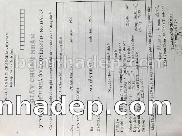 Bán nhà 79CT Tam Đảo phường 01 quận 10