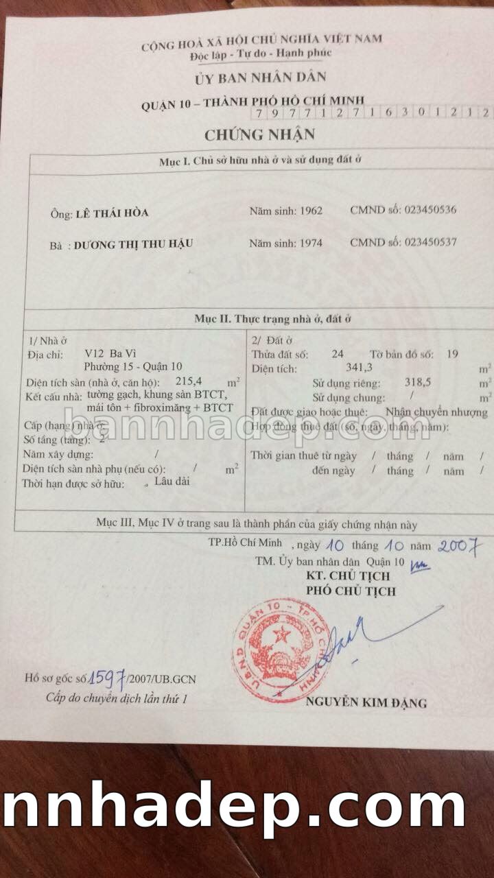 Bán nhà 723 Lê Hồng Phong phường 01 quận 10
