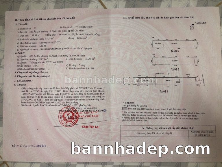 Bán nhà 420 Âu Cơ phường 01 quận Tân Bình