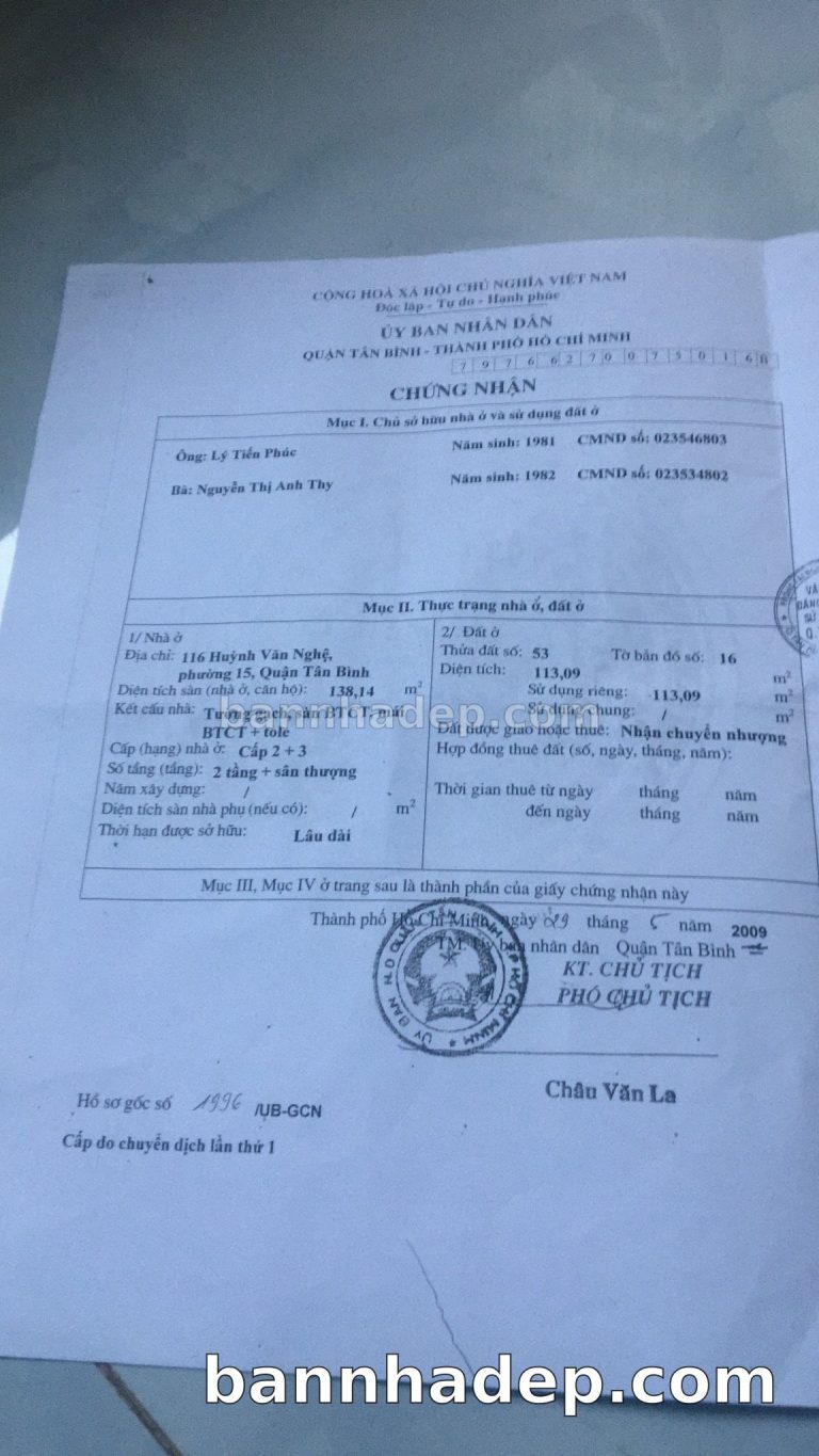 Bán nhà 116 huỳnh văn nghệ phường 01 quận Tân Bình