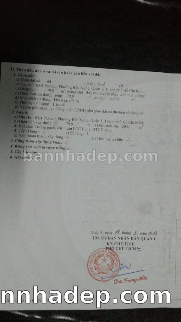 Bán nhà 63/4 Pasteur phường Bến Nghé quận 1