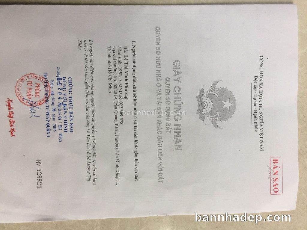 Bán nhà 68/201A Trần Quang Khải phường Tân Định quận 1