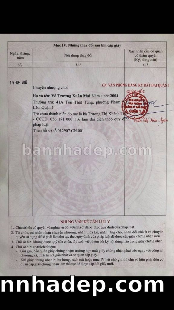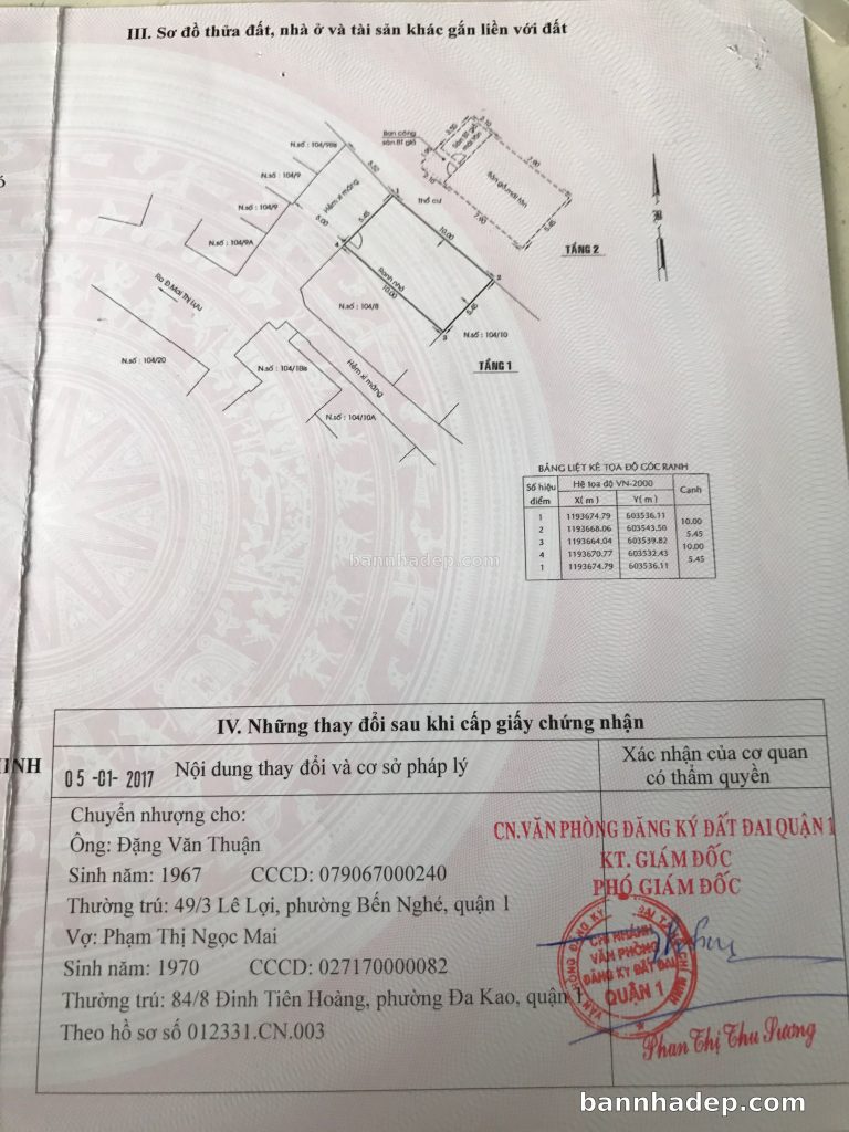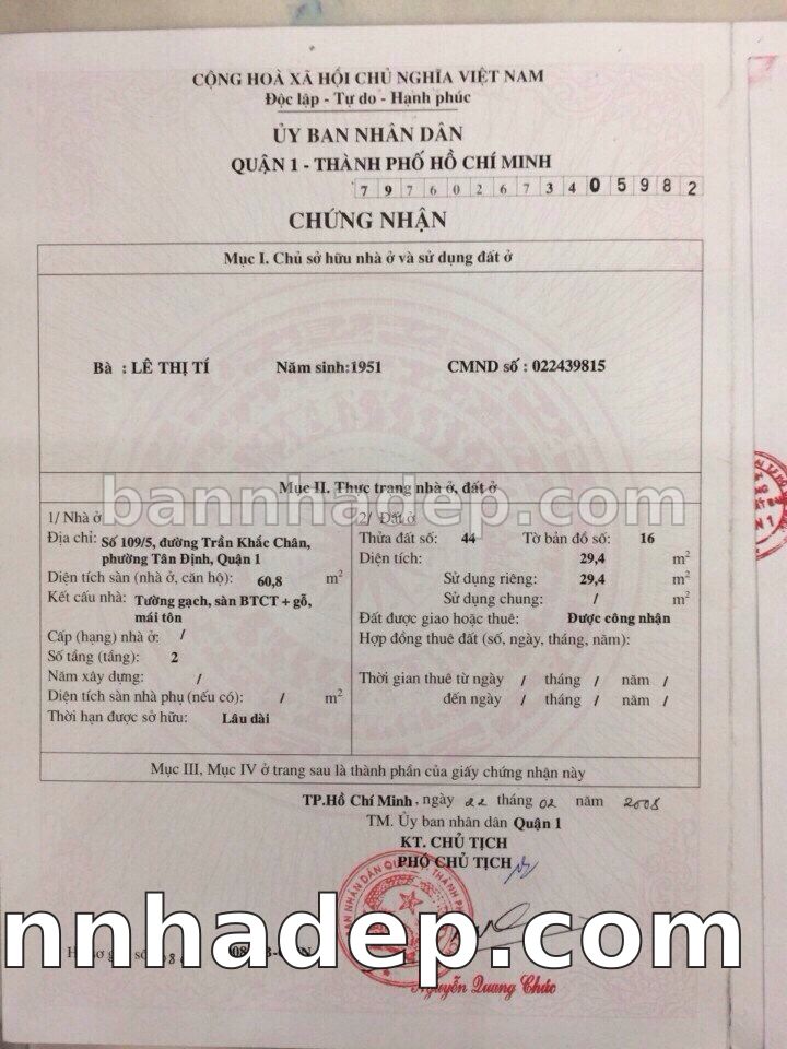 Bán nhà 109/4 Nguyễn Bỉnh Khiêm phường Đa Kao quận 1