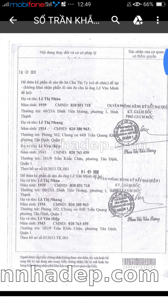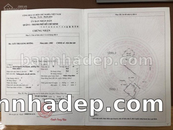 Bán nhà 101/10 Nguyễn Phi Khanh phường Tân Định quận 1