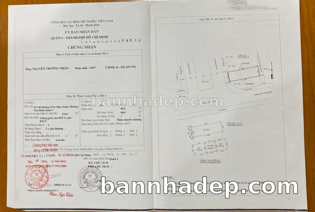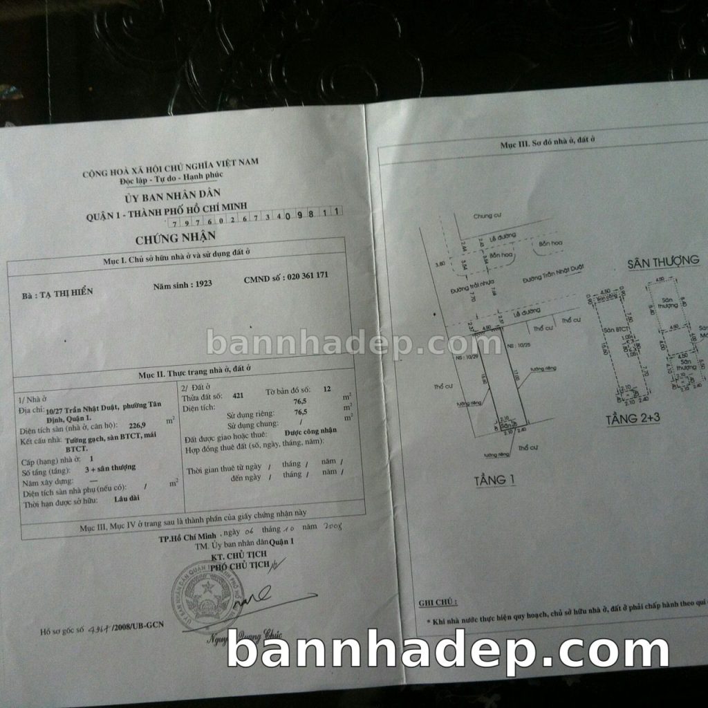 Bán nhà 457/1A Trần Hưng Đạo phường Cầu Kho quận 1
