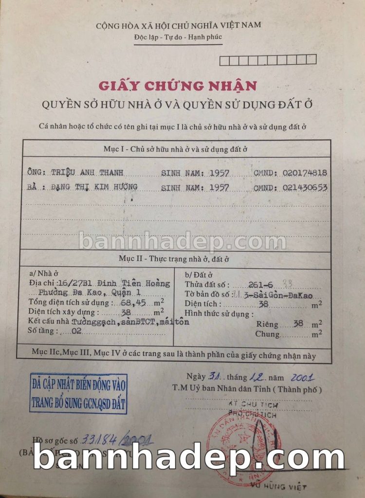 Bán nhà 16/27B1 Đinh Tiên Hoàng phường Đa Kao quận 1