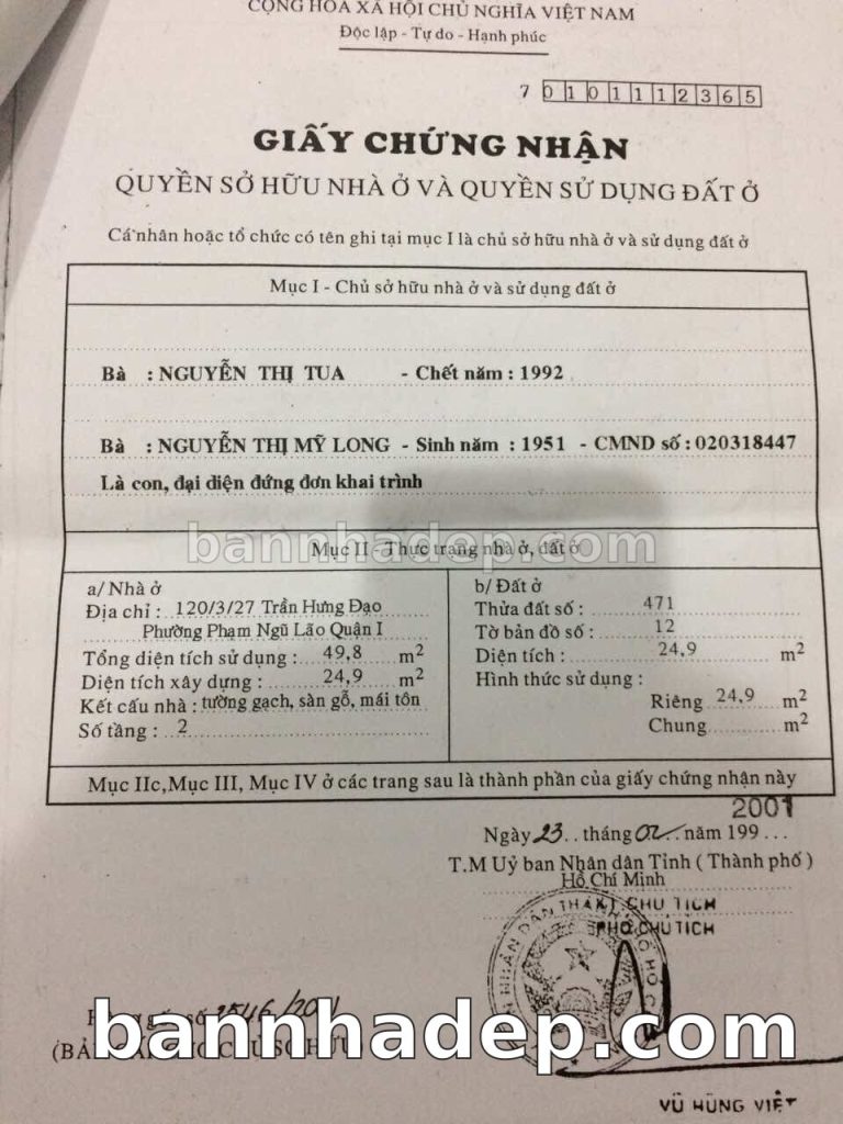 Bán nhà 120/3/27 Trần Hưng Đạo phường Phạm Ngũ Lão quận 1