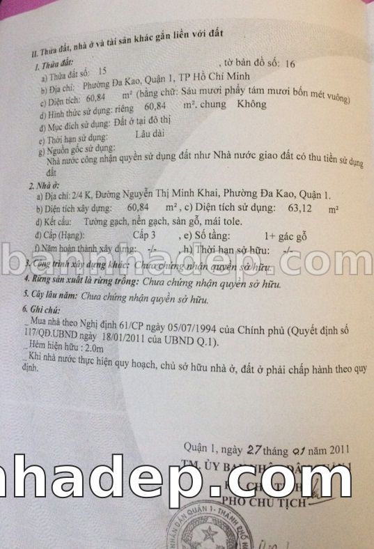 Bán nhà 2/5I Nguyễn Thị Minh Khai phường Đa Kao quận 1