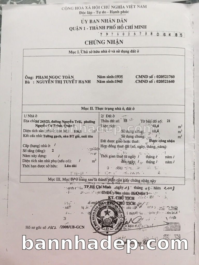 Bán nhà 245/23 Nguyễn Trãi phường Nguyễn Cư Trinh quận 1