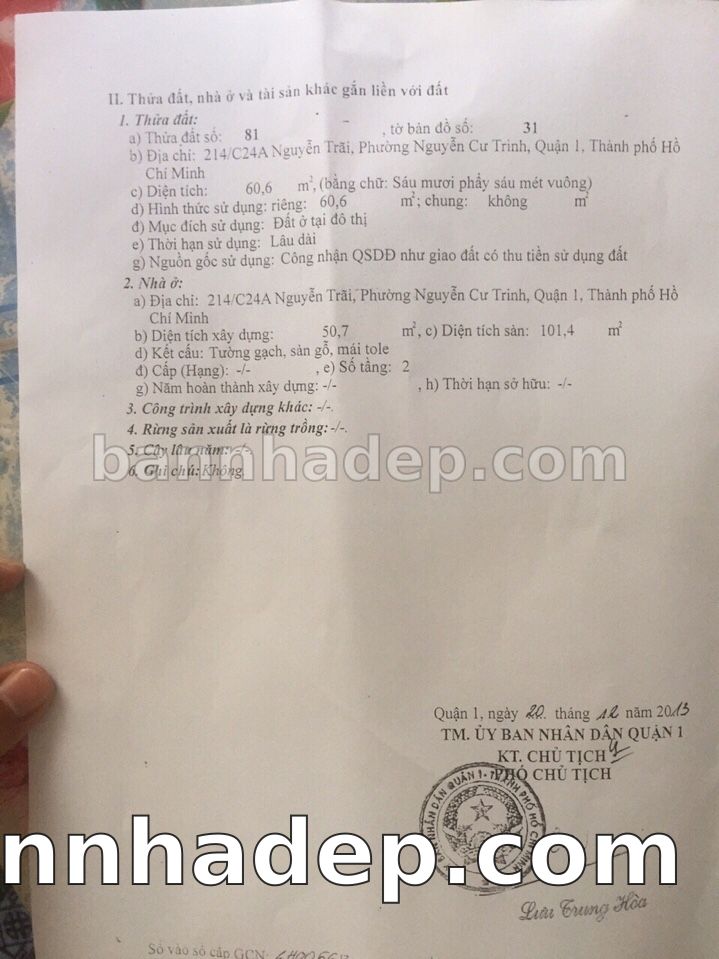 Bán nhà 214/C24A Nguyễn Trãi phường Nguyễn Cư Trinh quận 1