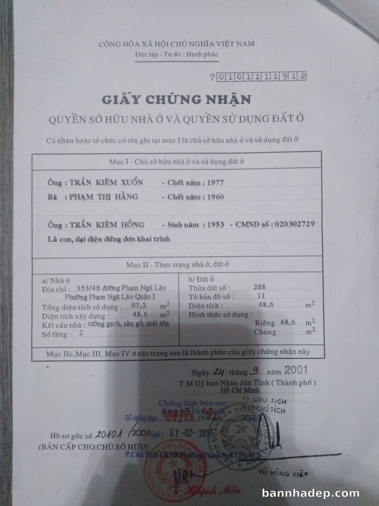 Bán nhà 371B – 371/1 Phạm Ngũ Lão phường Phạm Ngũ Lão quận 1