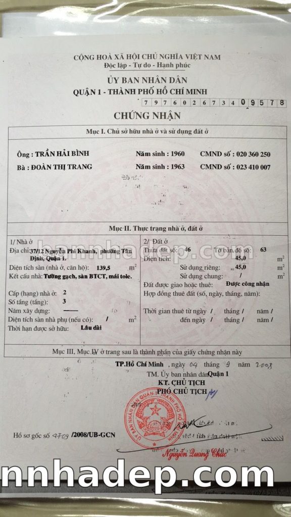 Bán nhà 37/12 Nguyễn Phi Khanh phường Tân Định quận 1