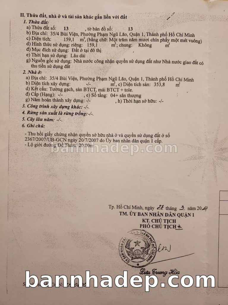 Bán nhà 35/4 Bùi Viện phường Phạm Ngũ Lão quận 1