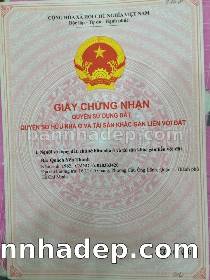 Bán nhà 3/16 Yersin phường Cầu Ông Lãnh quận 1
