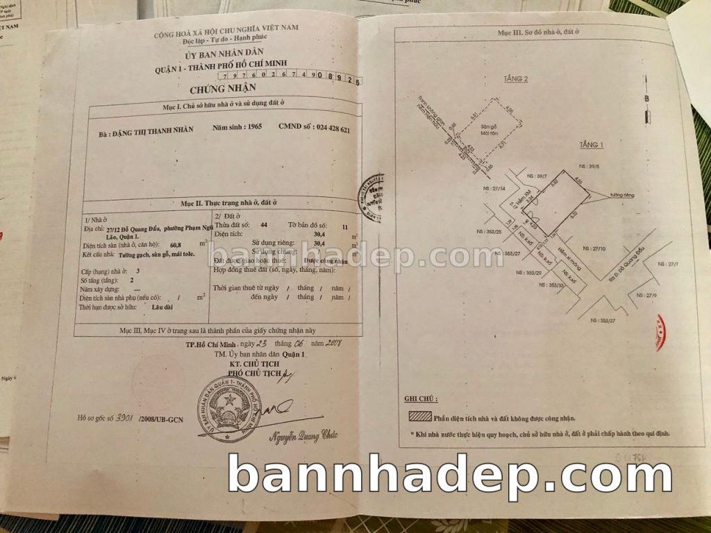 Bán nhà 27/12 Đỗ Quang Đẩu phường Phạm Ngũ Lão quận 1