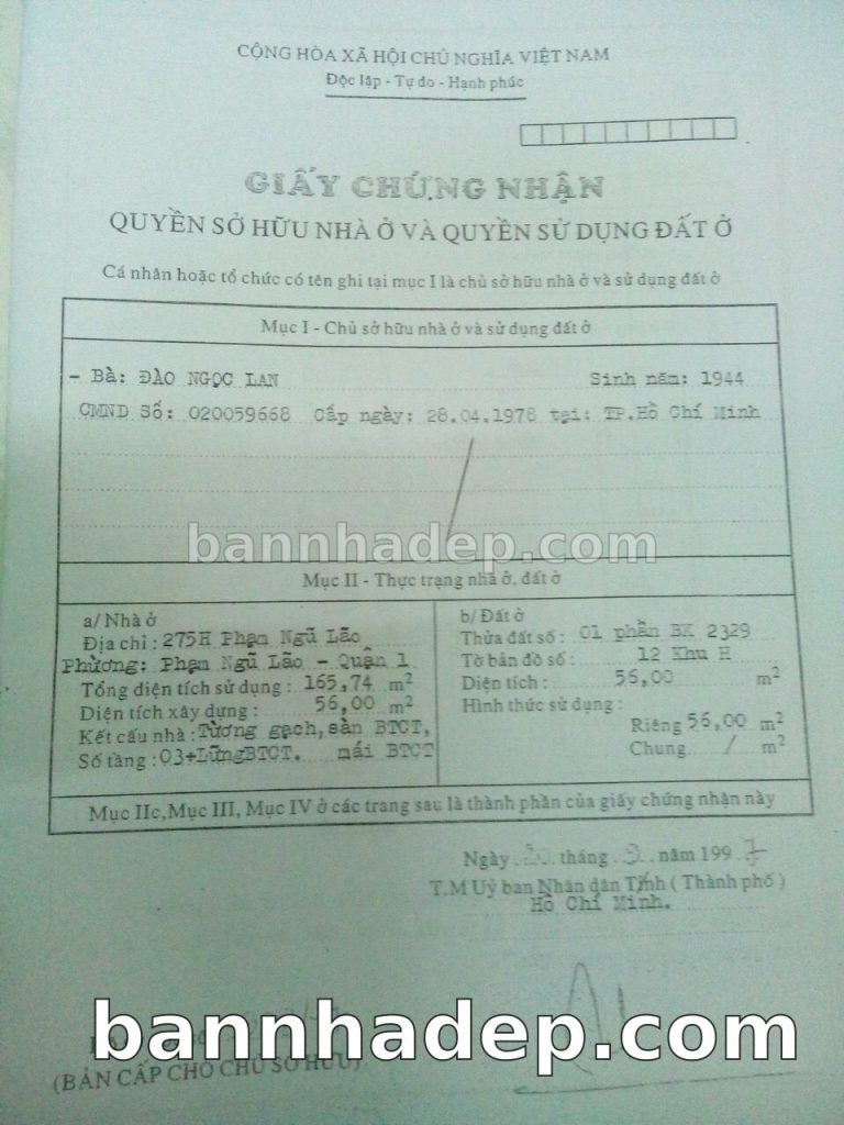 Bán nhà 275H Phạm Ngũ Lão phường Phạm Ngũ Lão quận 1