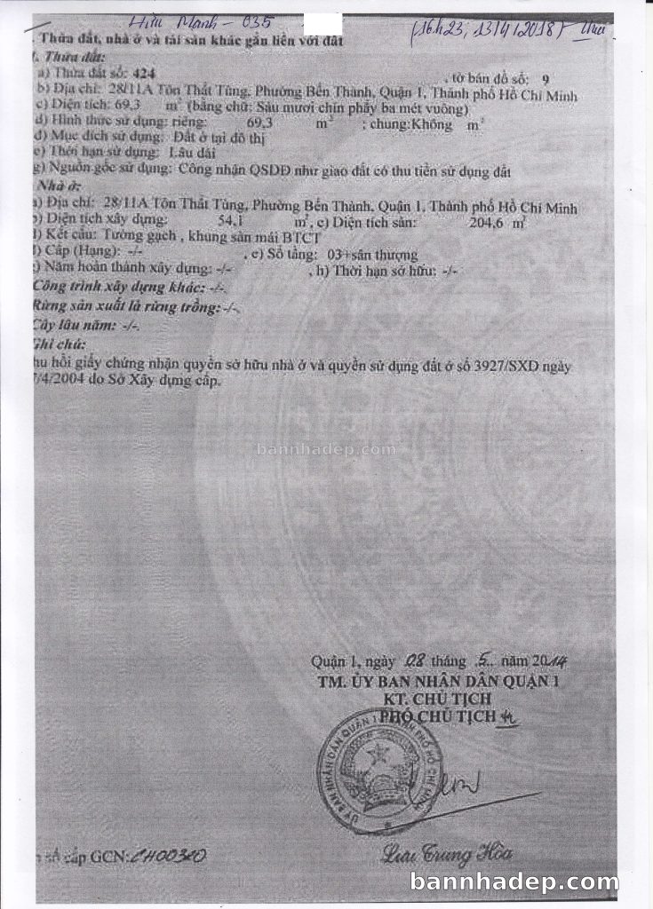 Bán nhà 28/11A Tôn Thất Tùng phường Bến Thành quận 1
