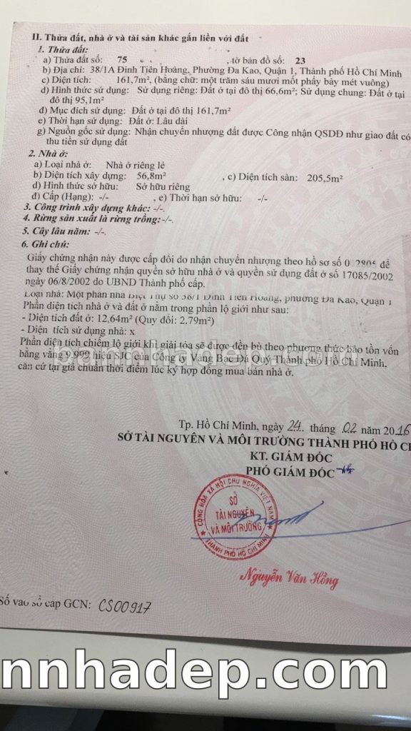 Bán nhà 38/1A Đinh Tiên Hoàng phường Đa Kao quận 1