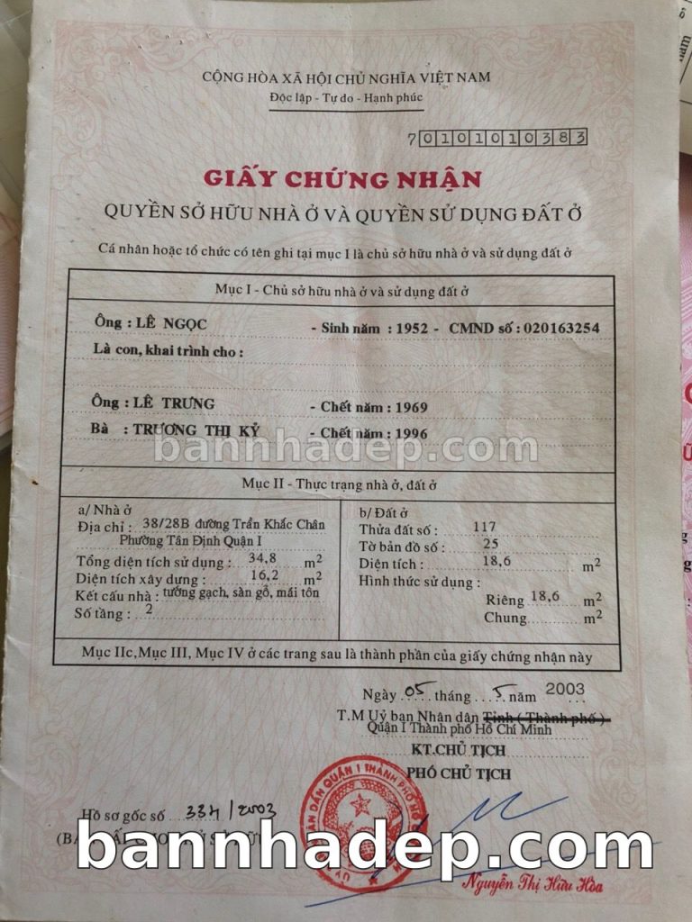 Bán nhà 38/4A Trần Khắc Chân phường Tân Định quận 1