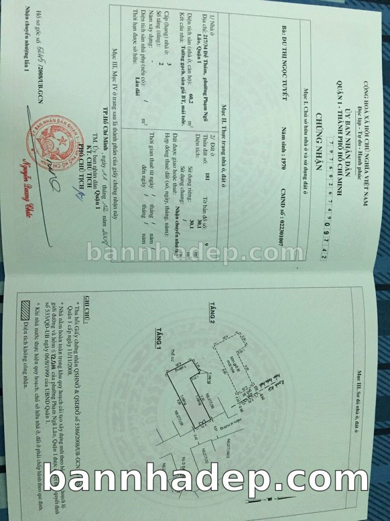Bán nhà 217/34/9 Đề Thám phường Phạm Ngũ Lão quận 1