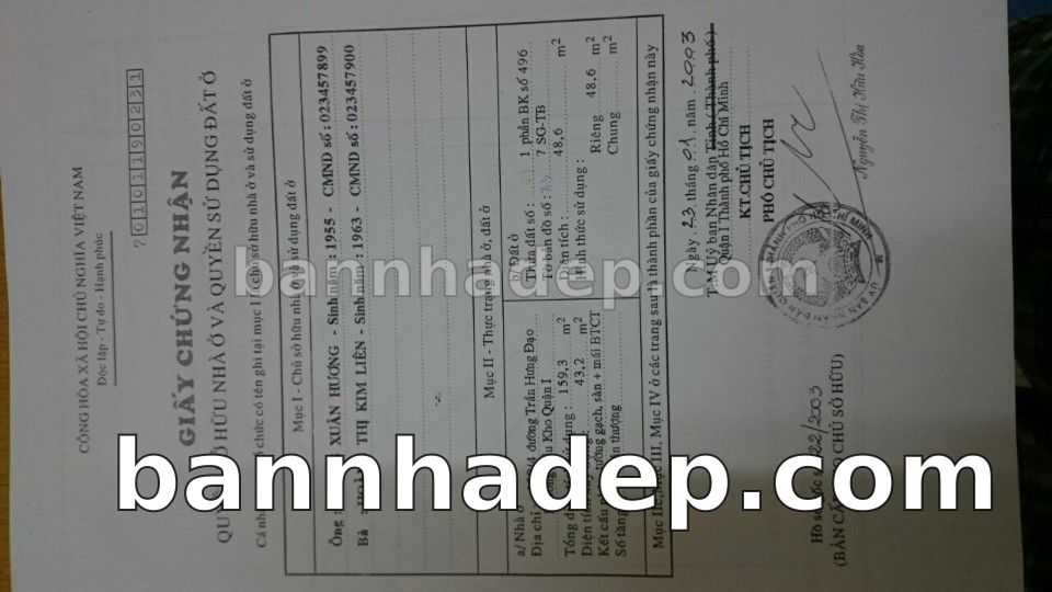 Bán nhà 100/2 Trần Hưng Đạo phường Phạm Ngũ Lão quận 1