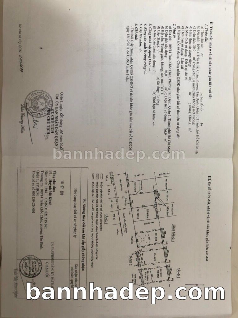 Bán nhà 109/14 Trần Khắc Chân phường Tân Định quận 1