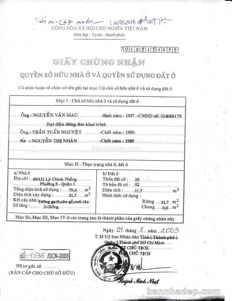 Bán nhà 611/19 Điện Biên Phủ phường 01 quận 3