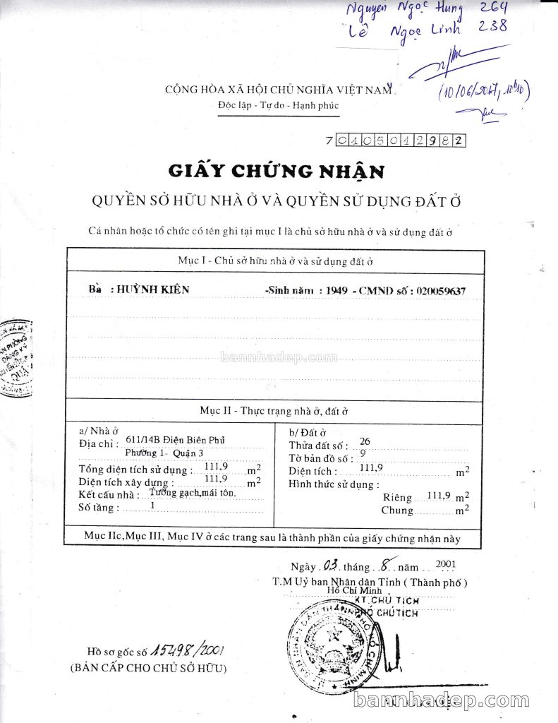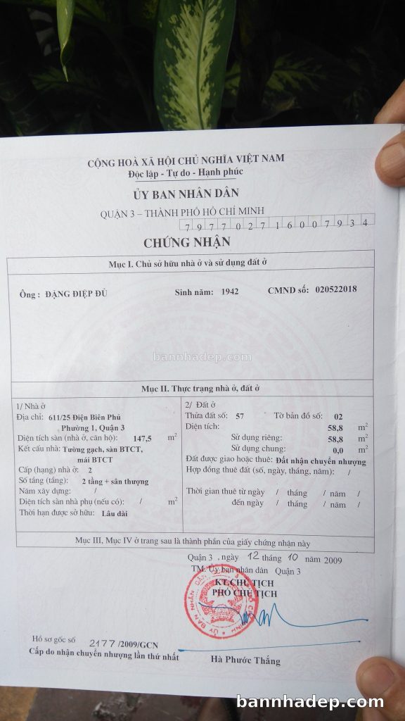 Bán nhà 611/25 Điện Biên Phủ phường 01 quận 3