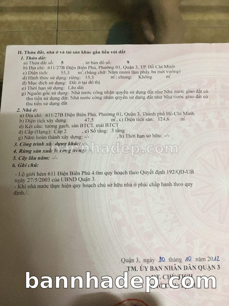 Bán nhà 611/27B Điện Biên Phủ phường 01 quận 3