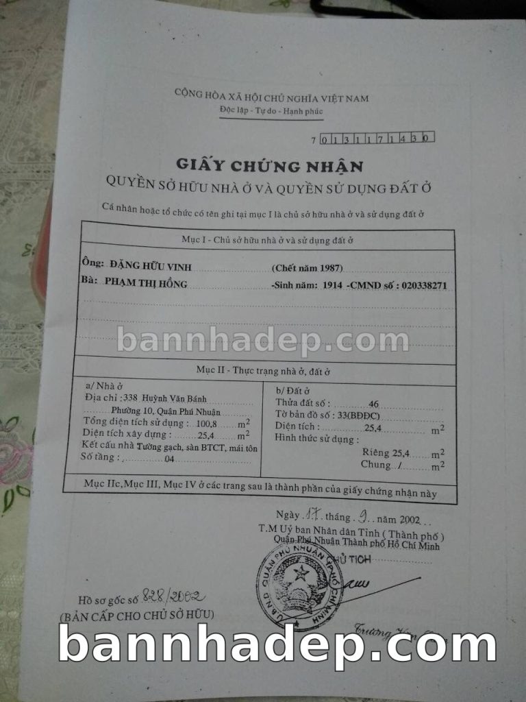 Bán nhà 338 Huỳnh Văn Bánh phường 01 quận Phú Nhuận