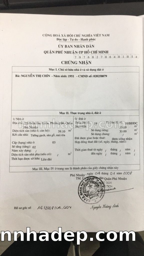 Bán nhà 223 Nguyễn Đình Chính phường 01 quận Phú Nhuận