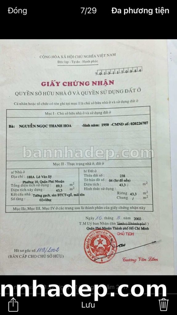 Bán nhà 188A Lê Văn Sỹ phường 01 quận Phú Nhuận