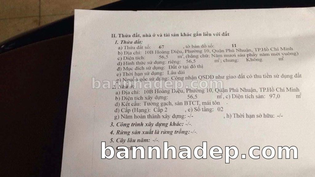 Bán nhà 10B Hoàng Diệu phường 01 quận Phú Nhuận