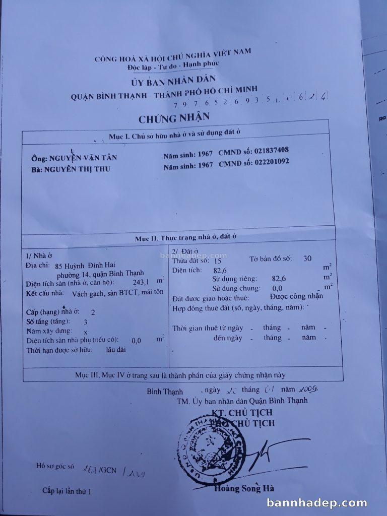 Bán nhà 85 Huỳnh Đình Hai phường 01 quận Bình Thạnh