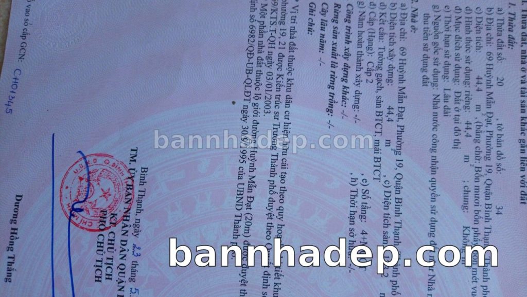 Bán nhà 69 Huỳnh Mẫn Đạt phường 01 quận Bình Thạnh