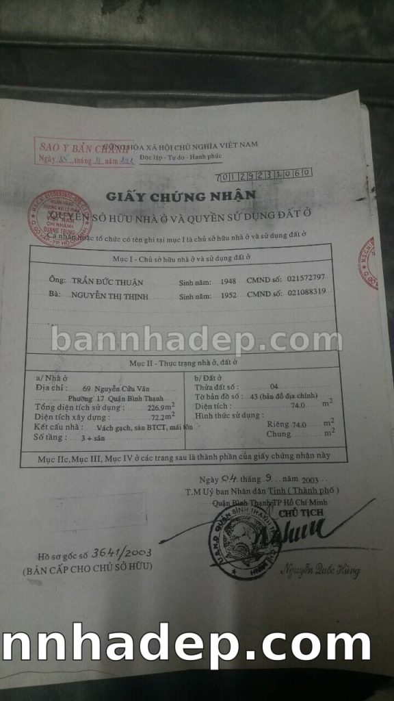 Bán nhà 69 Nguyễn Cửu Vân phường 01 quận Bình Thạnh