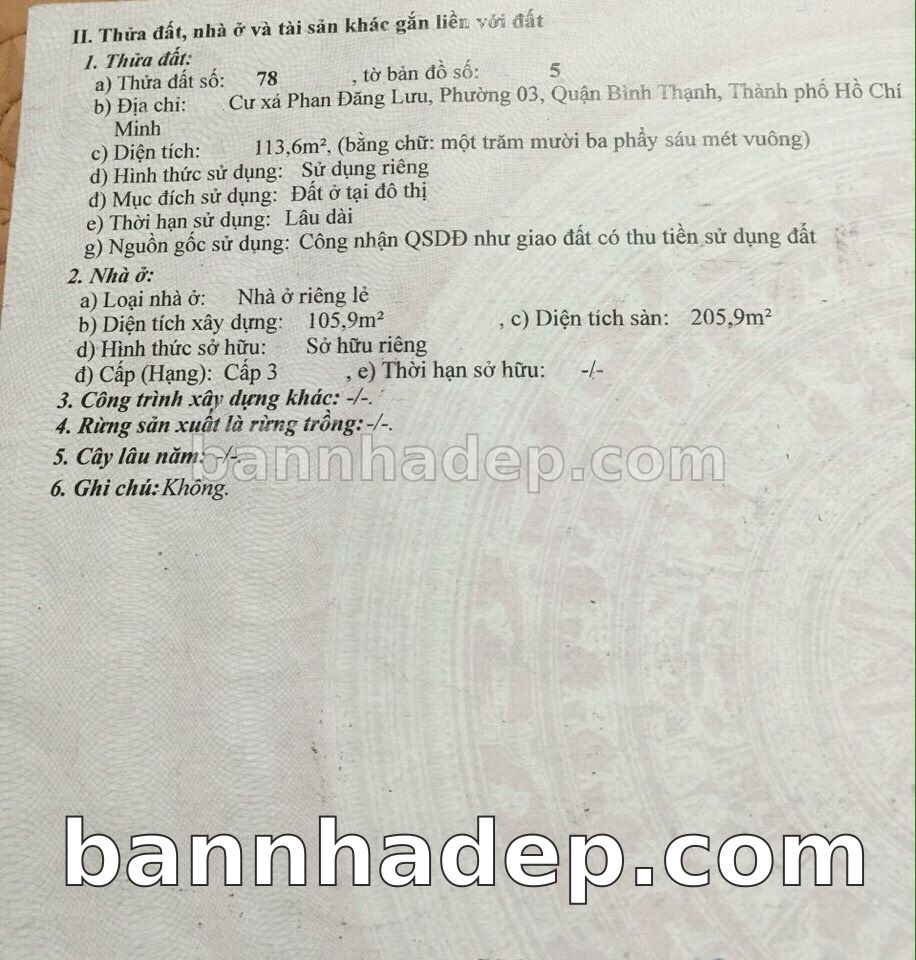 Bán nhà 5A Cư Xá Phan Đăng Lưu phường 03 quận Bình Thạnh
