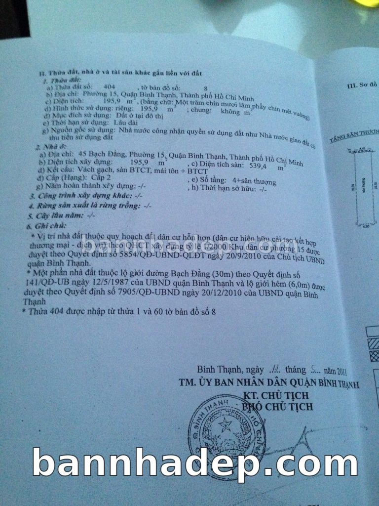 Bán nhà 45 Bạch Đằng phường 01 quận Bình Thạnh