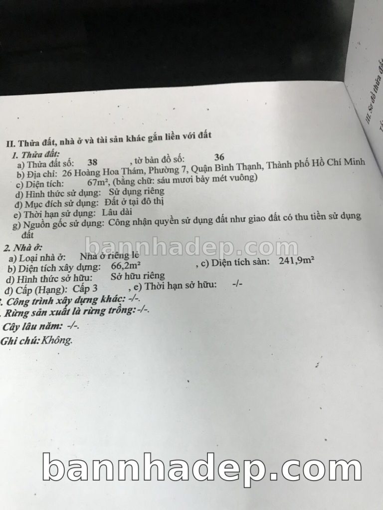 Bán nhà 26 Hoàng Hoa Thám phường 07 quận Bình Thạnh