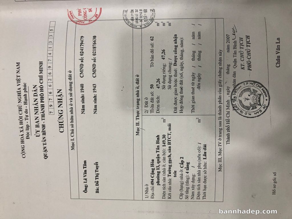 Bán nhà 494 Công Hoà phường 01 quận Tân Bình