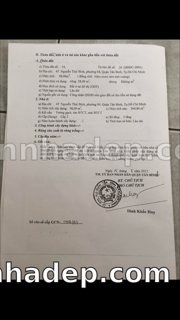 Bán nhà 47 Trần Mai Ninh phường 01 quận Tân Bình