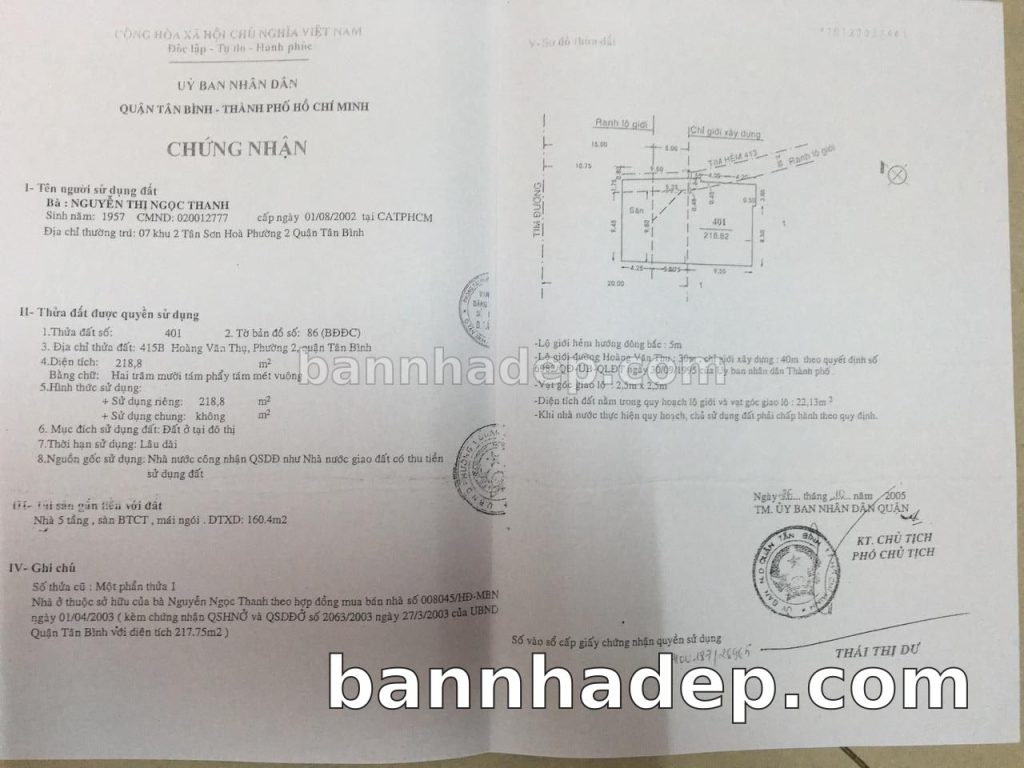 Bán nhà 415B Hoàng Văn Thụ phường 02 quận Tân Bình