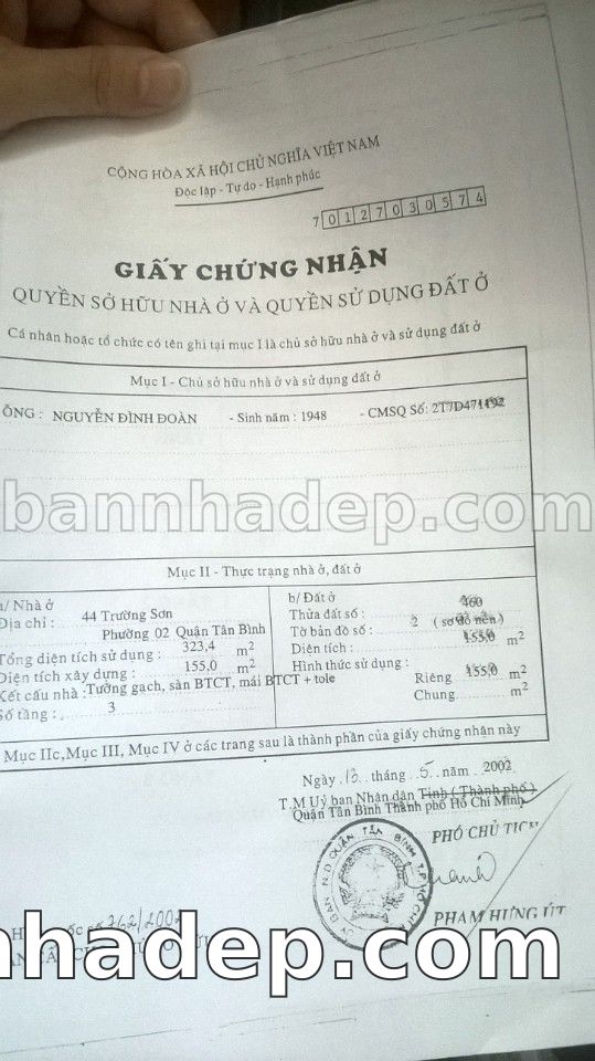 Bán nhà 44 Trường Sơn phường 02 quận Tân Bình