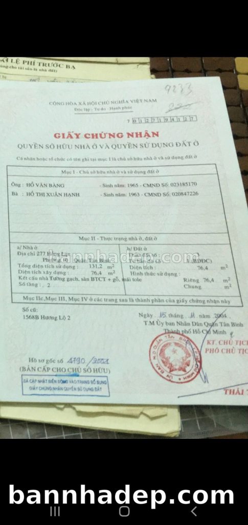 Bán nhà 277 Hồng Lạc phường 01 quận Tân Bình