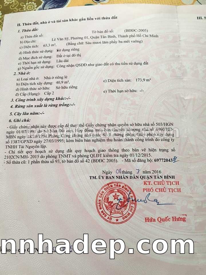 Bán nhà 286 Lê Văn Sỹ phường 01 quận Tân Bình