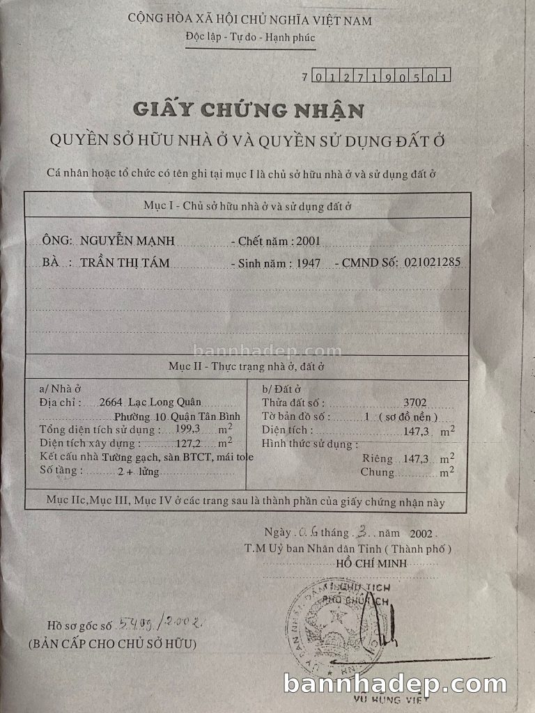 Bán nhà 2664 Lạc Long Quân phường 01 quận Tân Bình