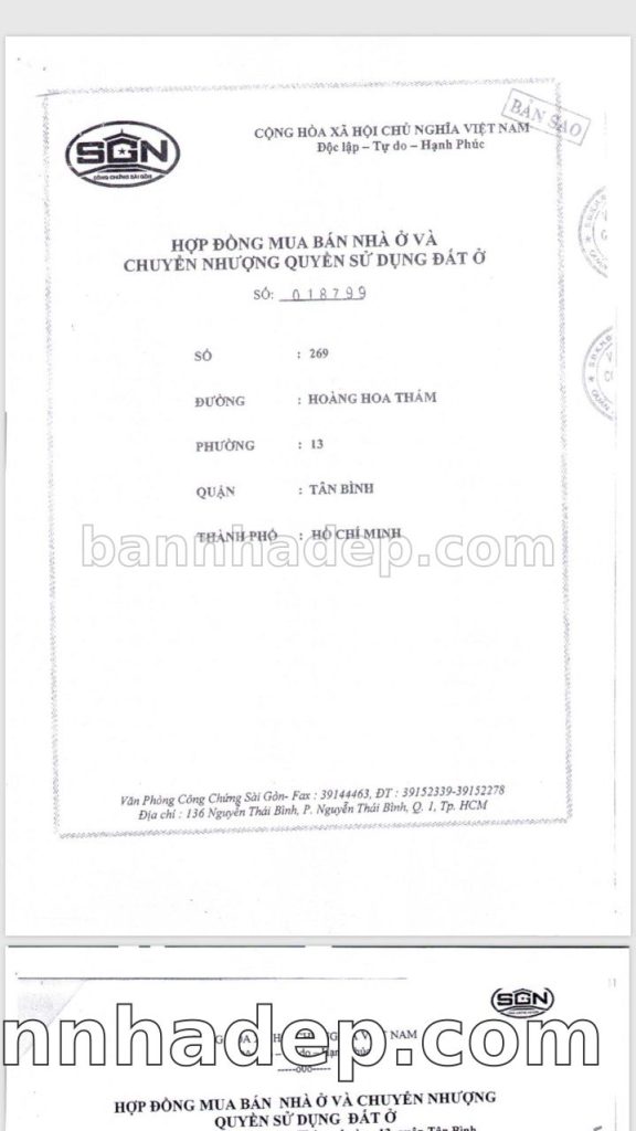 Bán nhà 269 Hoàng Hoa Thám phường 01 quận Tân Bình
