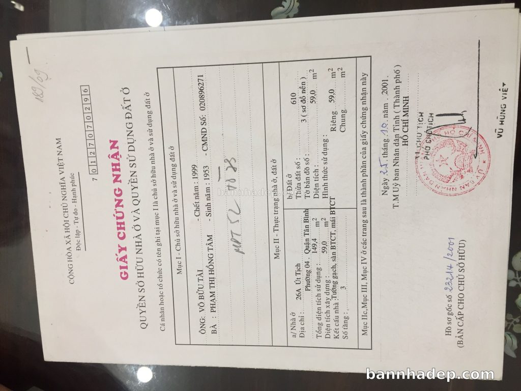 Bán nhà 26A+78 Út Tịch phường 04 quận Tân Bình