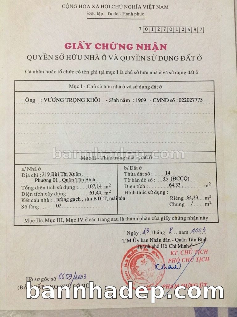 Bán nhà 219 Bùi Thị Xuân phường 01 quận Tân Bình